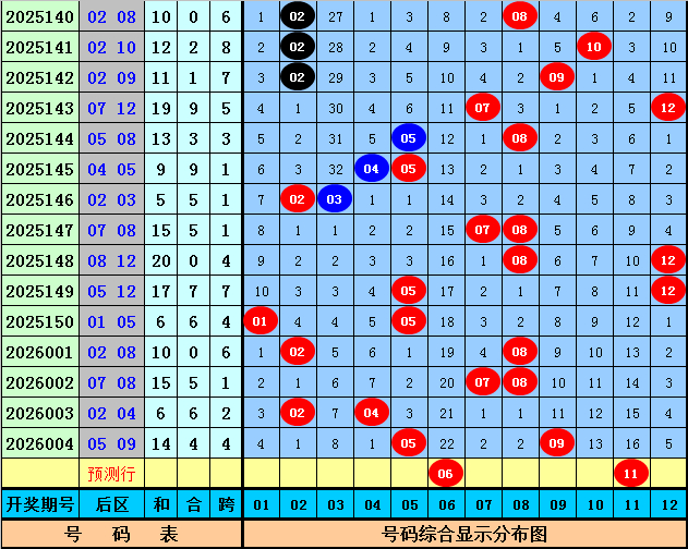 后辨别析:在第005期历史同时开奖中,和值大小为10:9,跨度奇偶比为13:6,本期后区详确两码06和11。