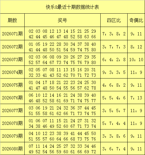 第四区【61-80】分析:上期第四区走温出现4个奖号:61、66、69、72,奇偶号码分别开出2个,在相连5期开奖中,该区开出16个奇数号码和11个偶数,奇数推崇较热,偶数号码走势相对较弱,对比上期,本期展望该区链接开出4个奖号,相宜关怀该区奇数73、75,驻防偶数号码62、80。